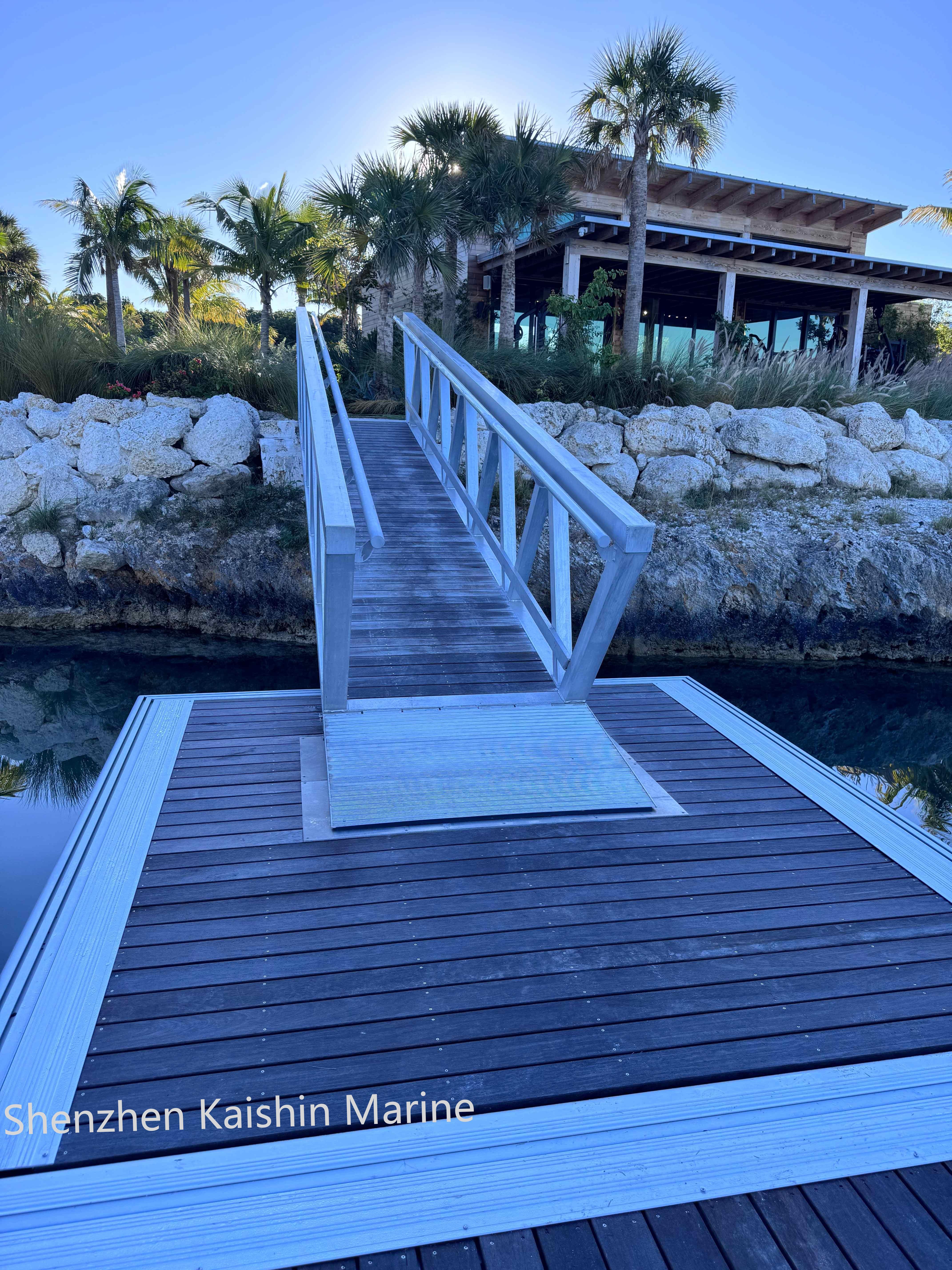 The Kaishin Marine Aluminum Gangways (Model KS1000) provide reliable access solutions for various marine environments. Ideal for marina floating walkways, aluminum floating bridges, and aluminum alloy floating gangway systems, they ensure safe boarding to boats, ships, and docks.